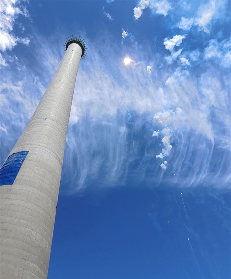 2021年 8月19日的清晨,初秋的内蒙已有些许凉意,但蒙泰东胜二期2*660MW热电联产项目3号烟囱改造及4号烟囱内筒钢结构工程施工现场却热火朝天,一片大干的景象。