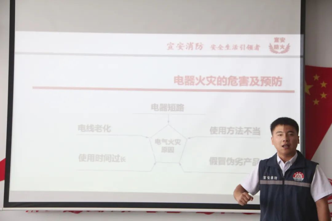 培训活动中,特邀宣安消防讲师许帆通过生动的案例和深入浅出的讲解,向培训人员详细阐述了火灾的成因、危害以及预防措施。特别针对家庭和办公场所常见的火灾隐患如电器过载、违规使用燃气等进行了重 点分析,并给出了专 业、实用的预防措施。同时,讲师还系统介绍了消防器材的种类、使用方法及注意事项,现场示范了灭火器、防火毯、防毒面具等消防器材的正确操作流程。