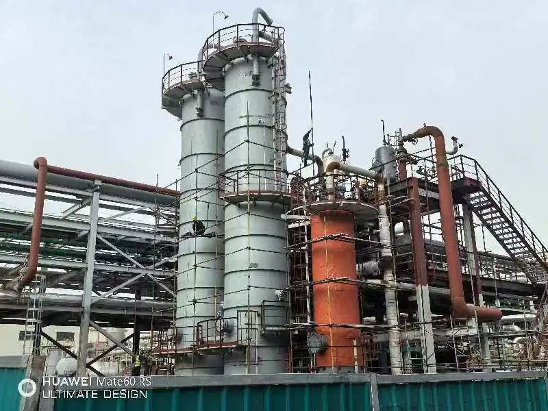 在维修保养工作中,杜凤雷带领的中威团队展现出了良好的专 业素养和敬业精神。他们根据厂区生产节点和设备保养的实际需求,在脚手架搭拆、焊缝打磨、喷砂除锈、玻璃钢防腐、保温拆除与恢复等设备维修保养以及塔器装置等设备技术改造方面,多次与厂方进行深入的技术交流。双方经过反复的研讨论证,制定出优化的技术方案,以确保维修保养工作的高 效与精准。