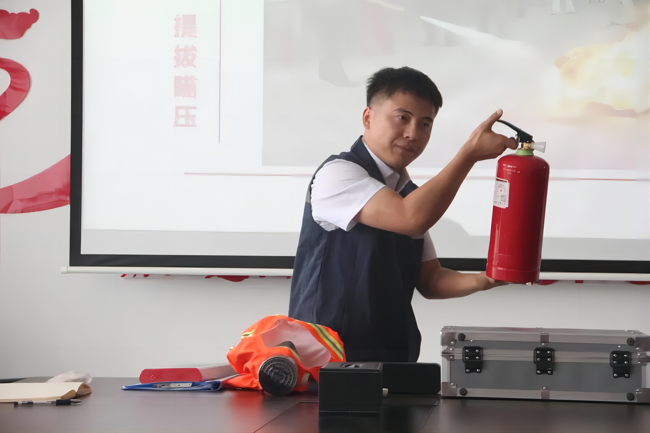 培训活动中,特邀宣安消防讲师许帆通过生动的案例和深入浅出的讲解,向培训人员详细阐述了火灾的成因、危害以及预防措施。特别针对家庭和办公场所常见的火灾隐患如电器过载、违规使用燃气等进行了重 点分析,并给出了专 业、实用的预防措施。同时,讲师还系统介绍了消防器材的种类、使用方法及注意事项,现场示范了灭火器、防火毯、防毒面具等消防器材的正确操作流程。