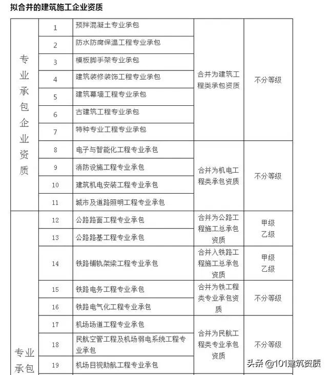 2、建筑总承包特级资质改为综合资质,不分行业、只设甲级,承揽项目范围无限扩大。